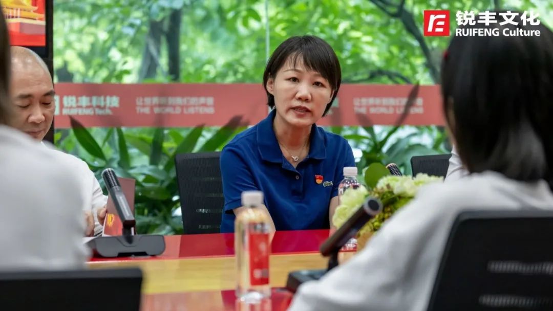 在交流会上,番禺区文广旅体局科长、党建指导员王霞确切地传达上级党建要求,并在党支部规范化建设、党组织活动开展方面为锐丰党支部提供了工作思路、活动资源。随后,每位党员逐一发言,除了分享本次党日活动的收获体会外,还为日后如何推动企业高质量党建提供了自己的建议。