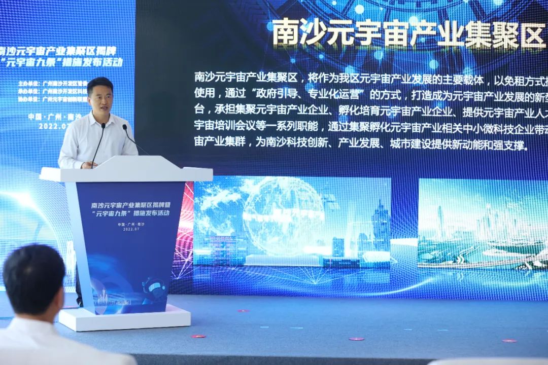 活动上,南沙开发区党工委副书记谢伟发布了“元宇宙九条”:南沙将从技术攻关支持、创新平台资助、产业集聚扶持、研发投入补助、应用场景构建、创新生态建设、人才引进补贴、科技金融支撑、知识产权促进等九个方面对元宇宙产业发展给予支持。