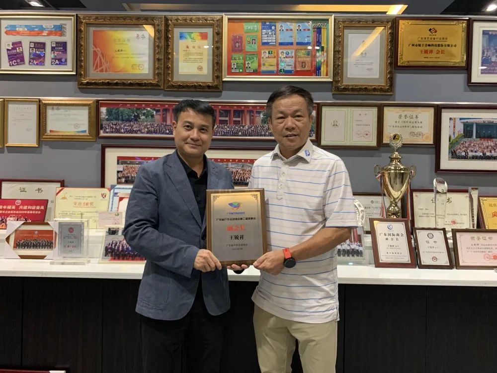 ▲锐丰科技股份董事长王锐祥(左)、广东省户外运动协会会长易洪陶(右)