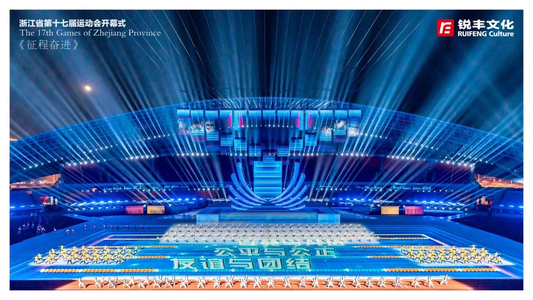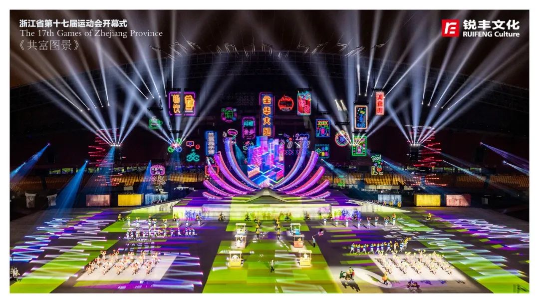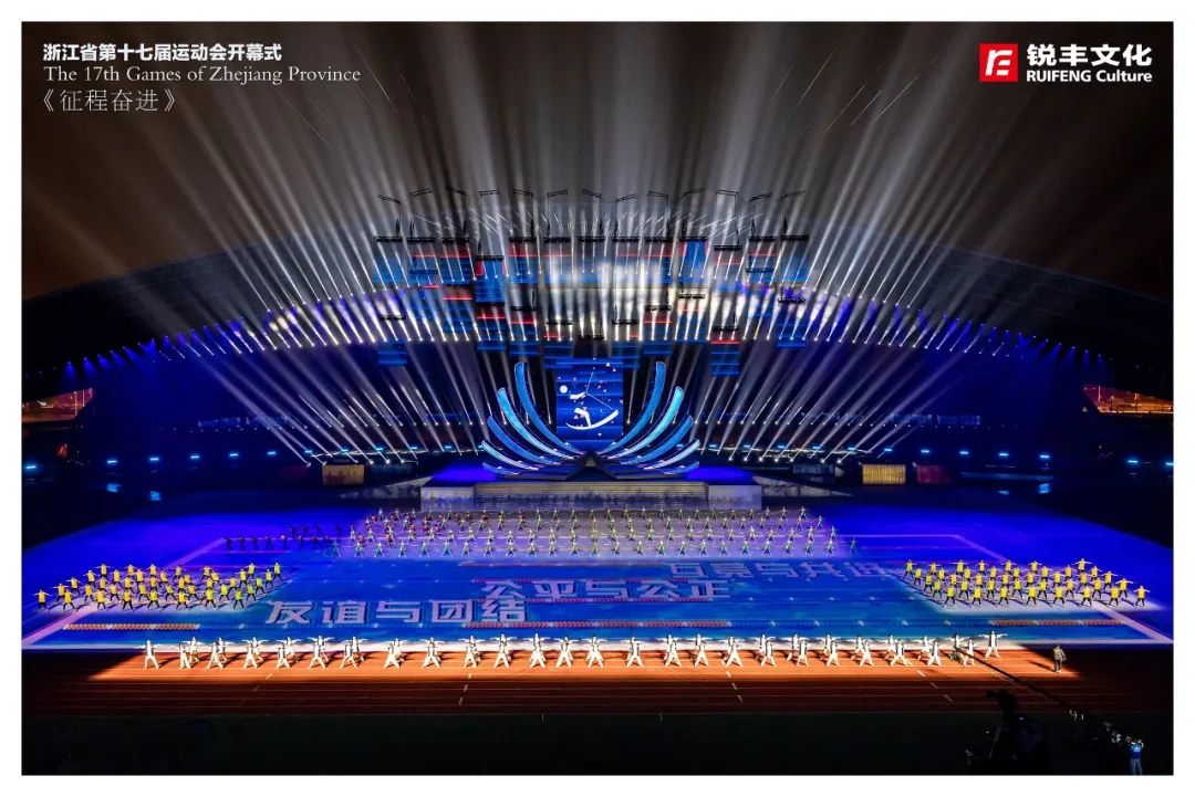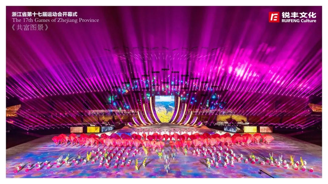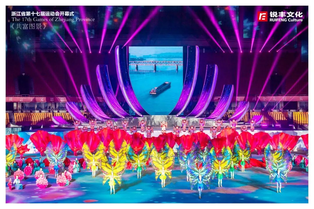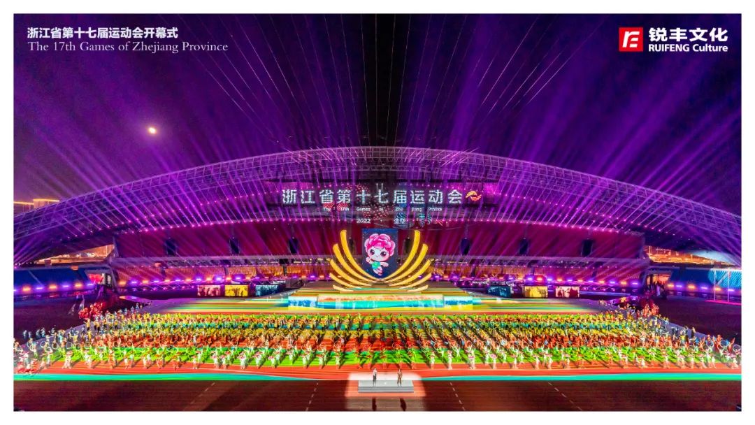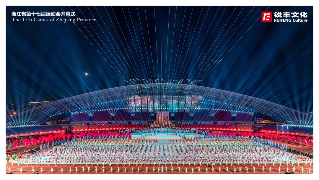 锐丰文化作为本届省运会开幕式创意制作团队,围绕“活力省运、崛起浙中”的主题,创新采用仪演融合的全新模式,向全国、全省人民呈现一届具有“浙江特色、金华韵味”的体育文化盛会,同时开创了省运会开幕式编排先例,全面展现“诗画江南、活力浙江”的崭新气象,全方位展示浙江体育事业的丰富多彩和蓬勃发展。