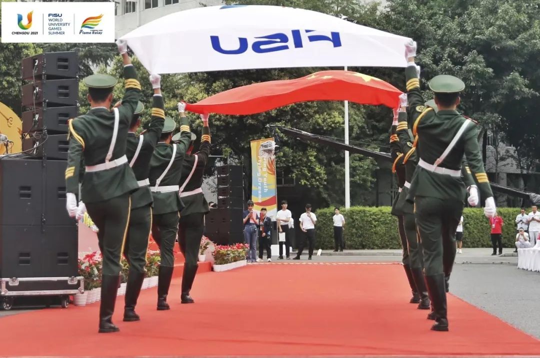 四川省政协副主席、西南交通大学校长杨丹,教育部体育卫生与艺术教育司一级巡视员郝风林,四川省体育局副局长程静,中共成都市委常委、市纪委书记、市监委主任,成都大运会执委会副主席刘光辉,中共成都市委常委、成都大运会执委会副主席郭杉,成都市人民政府副市长、成都大运会执委会执行副主席刘任远等领导嘉宾出席仪式。中共四川省委教育工委副书记,四川省教育厅党组成员、副厅长、一级巡视员崔昌宏主持仪式。