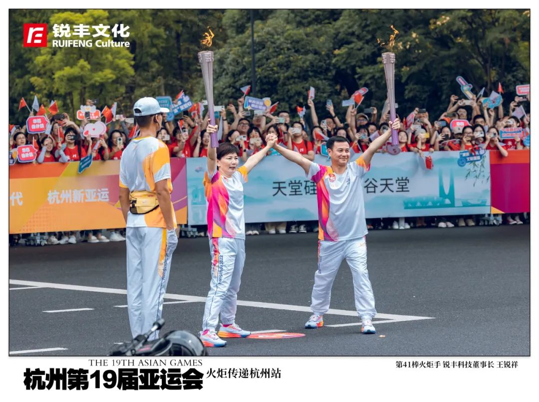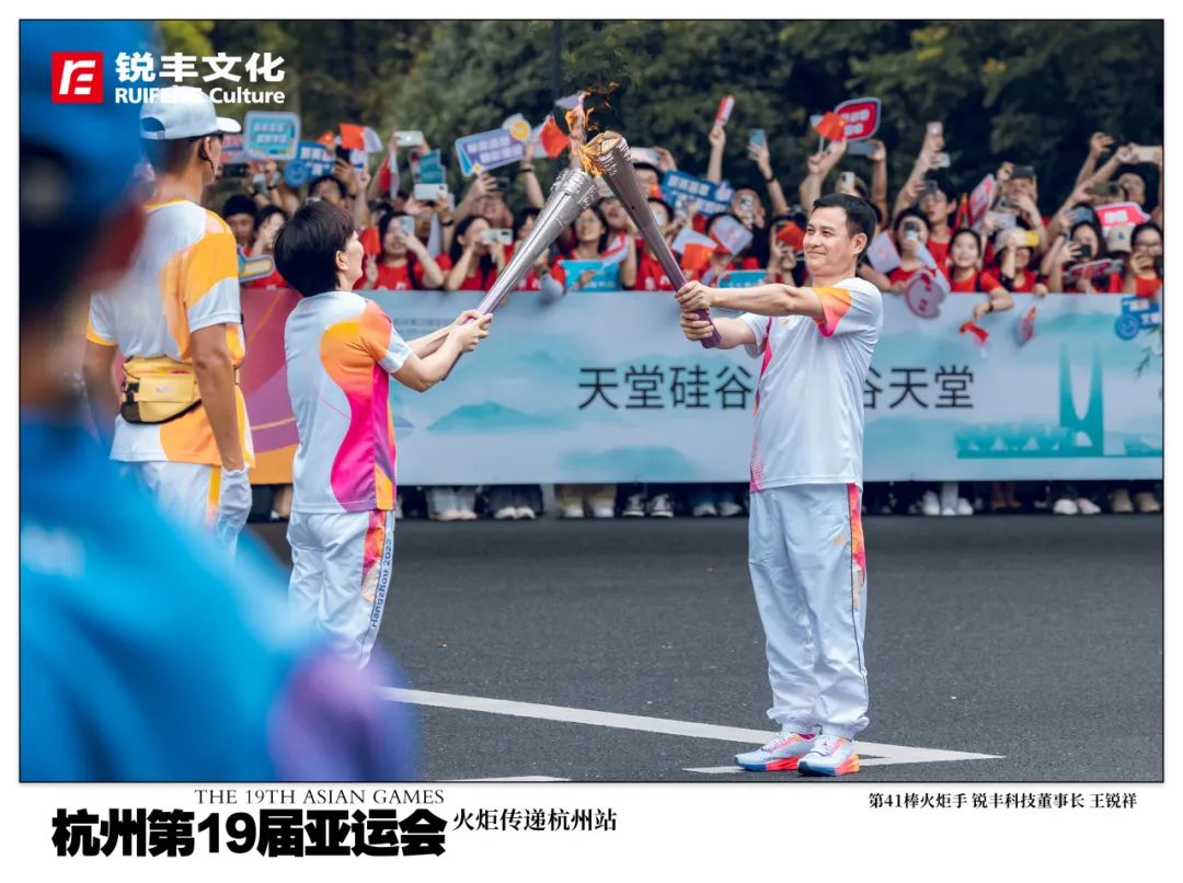 2023年杭州亚运会,即将大幕揭开,在这个承载梦想和荣光的舞台上,亚洲能量即将全力迸发。作为锐丰品牌的掌舵人,王锐祥将把此次作为火炬手传递亚运精神的冲劲,“薪火”相传,生生不息,带领锐丰文化团队为建设体育强国和文化强国做出更大的贡献。