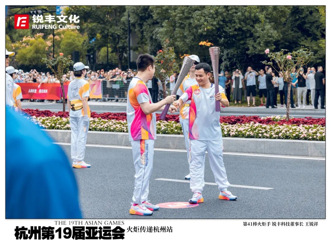 “薪火”相传喜迎亚运,心心相融爱达未来。9月20日,杭州第19届亚洲运动会(以下简称为:杭州亚运会)火炬传递最后一站回到了杭州。锐丰科技董事长王锐祥受杭州亚运会组委会邀请,荣任杭州站第41棒火炬手参与亚运圣火的传递,点燃体育梦想!