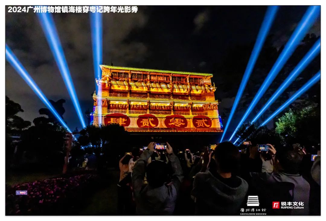近些年,随着广州技术的发展,广府春节的“看点”也丰富了起来。以锐丰文化为例,今年元旦期间,就有尝试用一些新的科技手段让古建筑“活”起来:在陈家祠、镇海楼旅游景区等古地标建筑上,锐丰通过一些声光电赋能,开启镇海楼倒数活动,就得到了许多市民的欢迎。