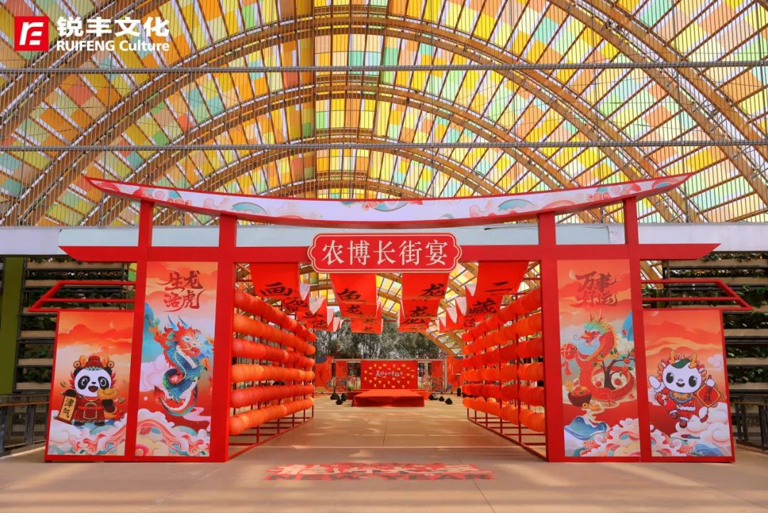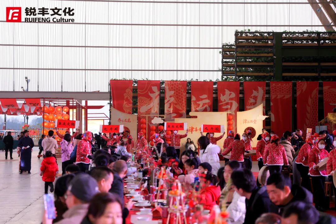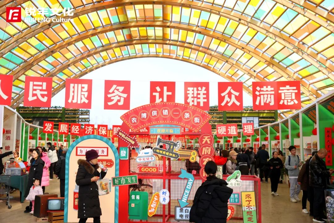 天府农博园作为全市“十六大场景贺新春”特色文化活动场景之一,锐丰文化创意策划设计团队以“美好乡村幸福年”为主题,以“重拾儿时年味”为策划思路,精心制作“年味盛宴·长街宴”、“年俗大赏·游园会”和“年货大街·复古年市”三大核心场景,让市民游客体验年味正浓“津”喜年。