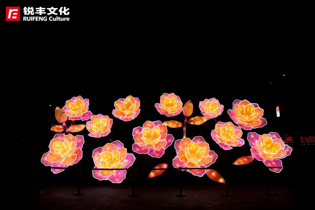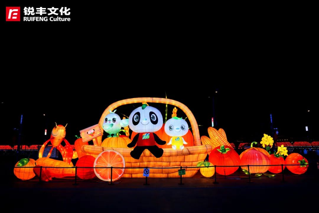 天府农博园作为2024成都世园会现代农艺分会场,锐丰文化团队策划设计了“农艺主题花灯会”,以春节、天府农博园、新津特色文化和2024成都世园会为创意元素,设计了寓意美好祥和的“恭贺新春”、五谷丰登”、“猜灯谜”、“花团锦簇”、“农博四时”和“游鱼如梦”等7组花灯。
