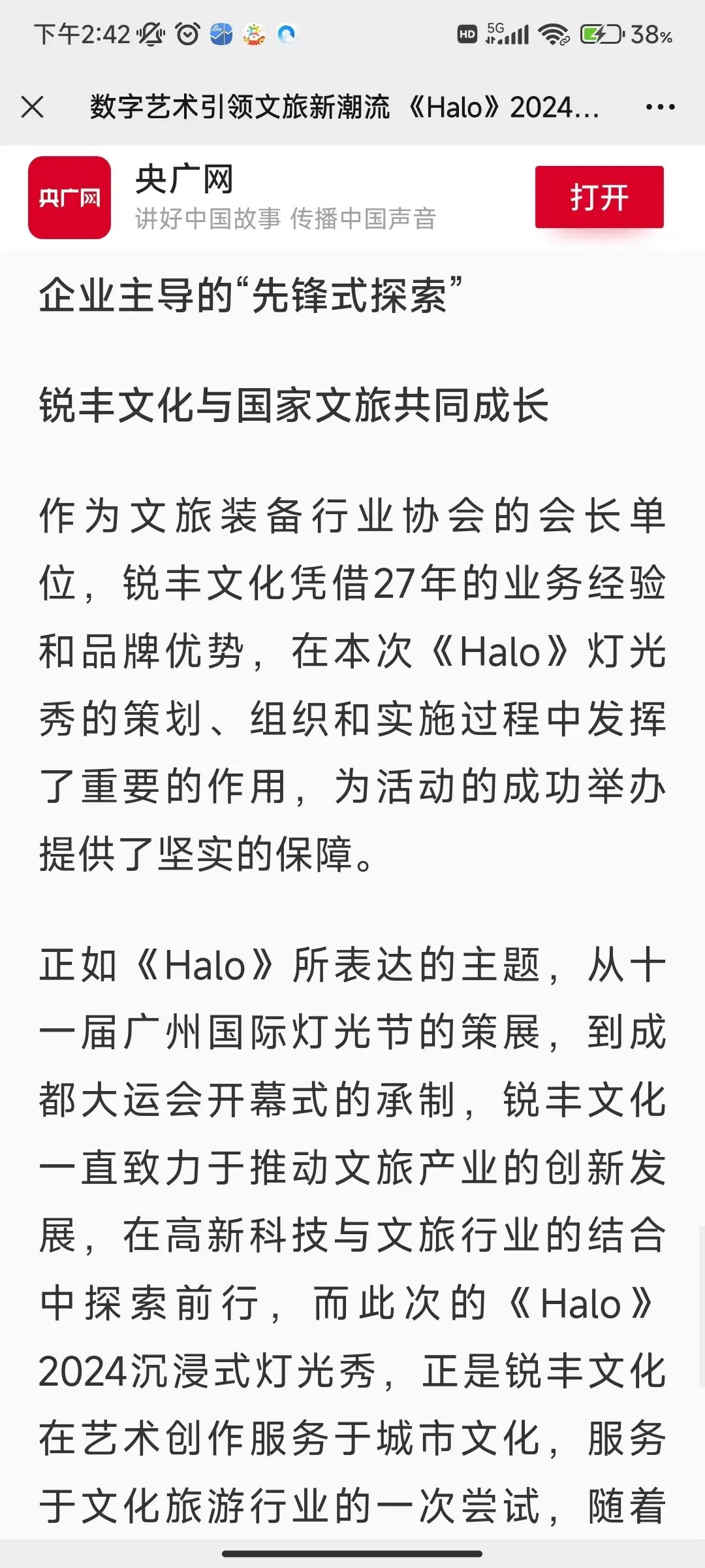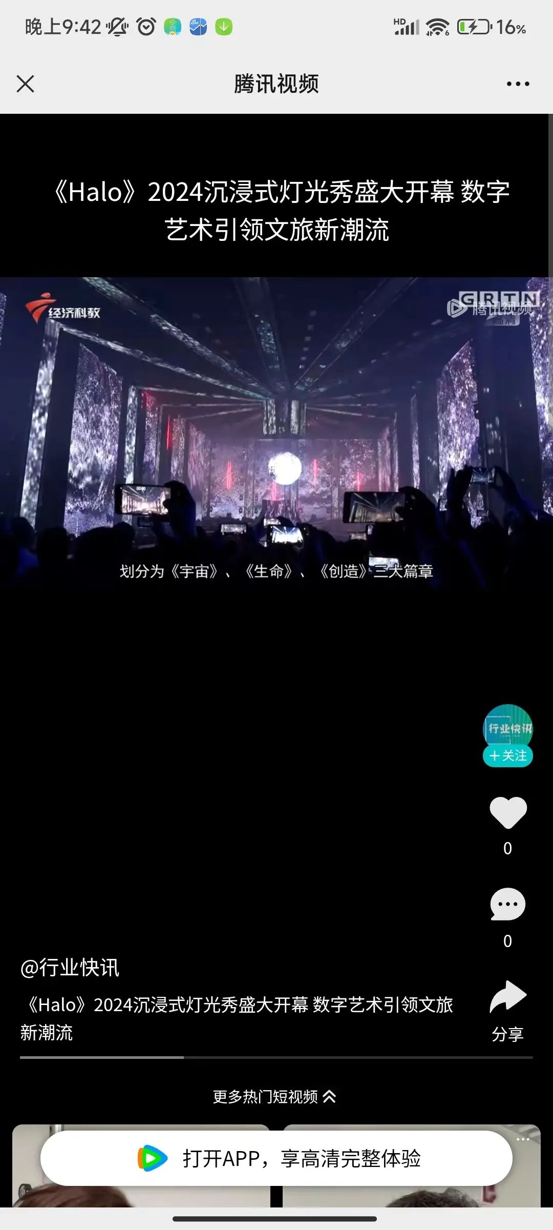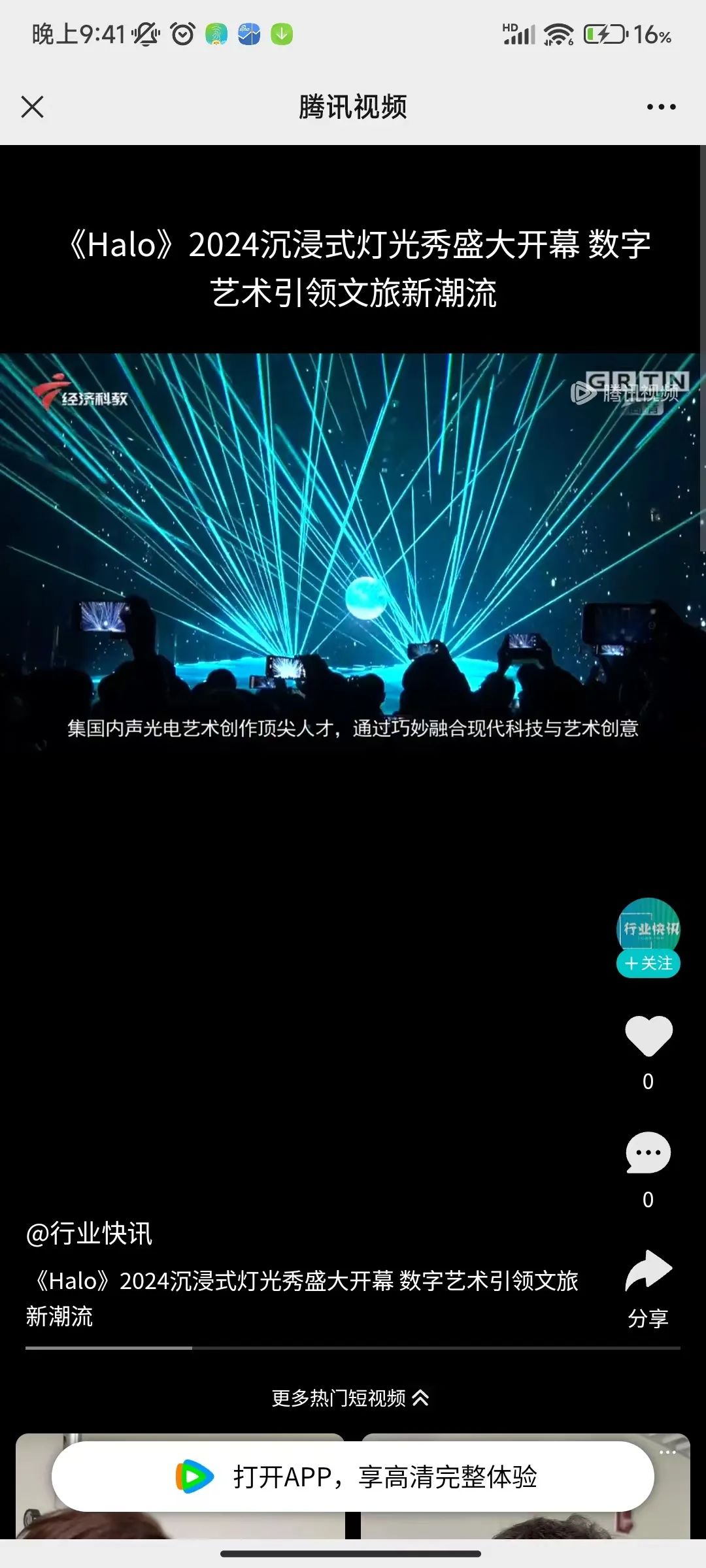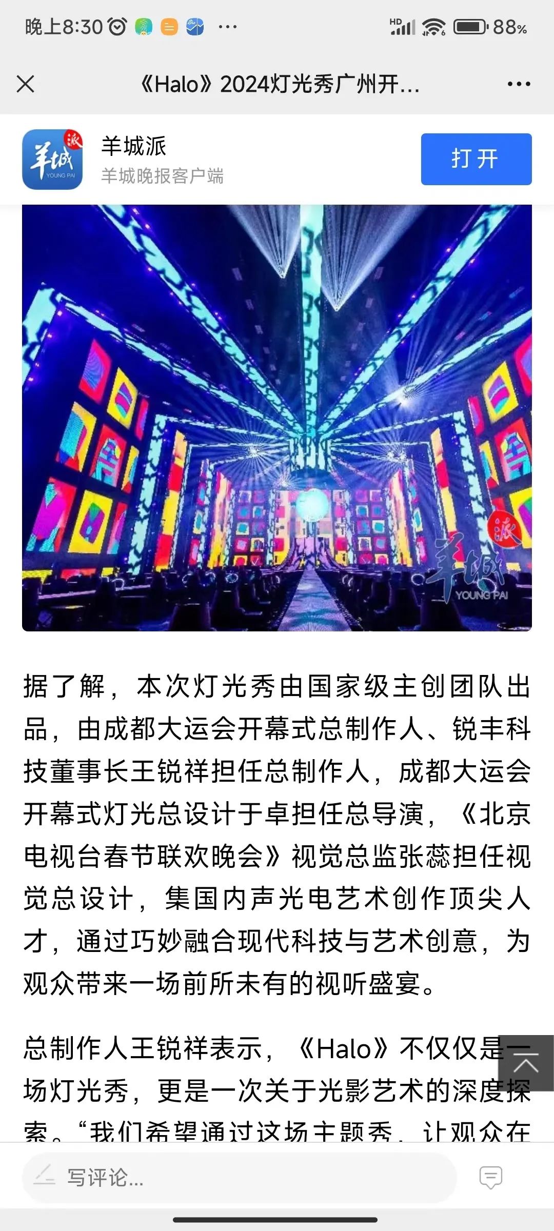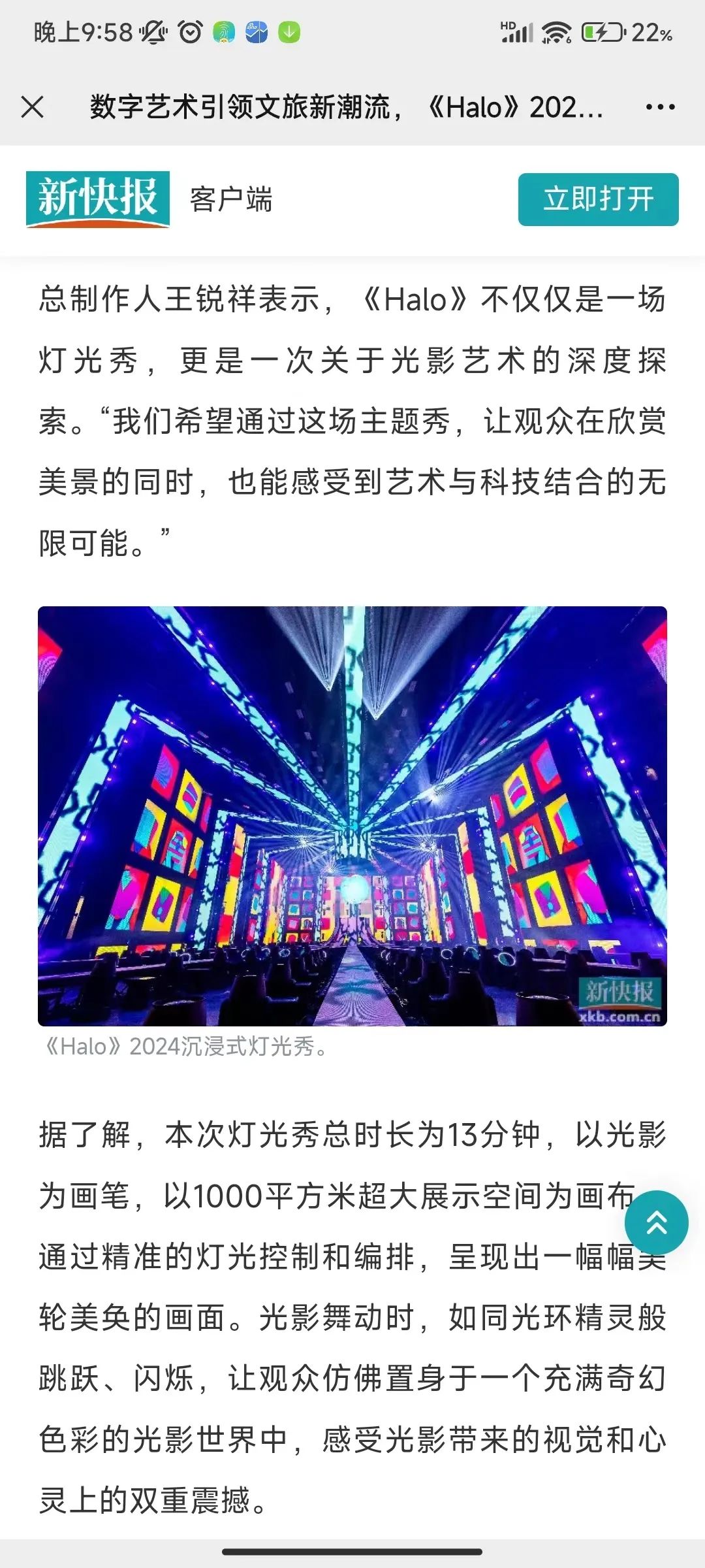 除了备受媒体的关注外,《Halo》深受观众青睐,在抖音、小红书、微博、朋友圈等社交平台发布相关帖子、短视频、图片等内容,绝美的灯光秀频频“霸屏”,其中#halo沉浸式灯光主题秀# 话题在抖音平台上超530万的传播量。