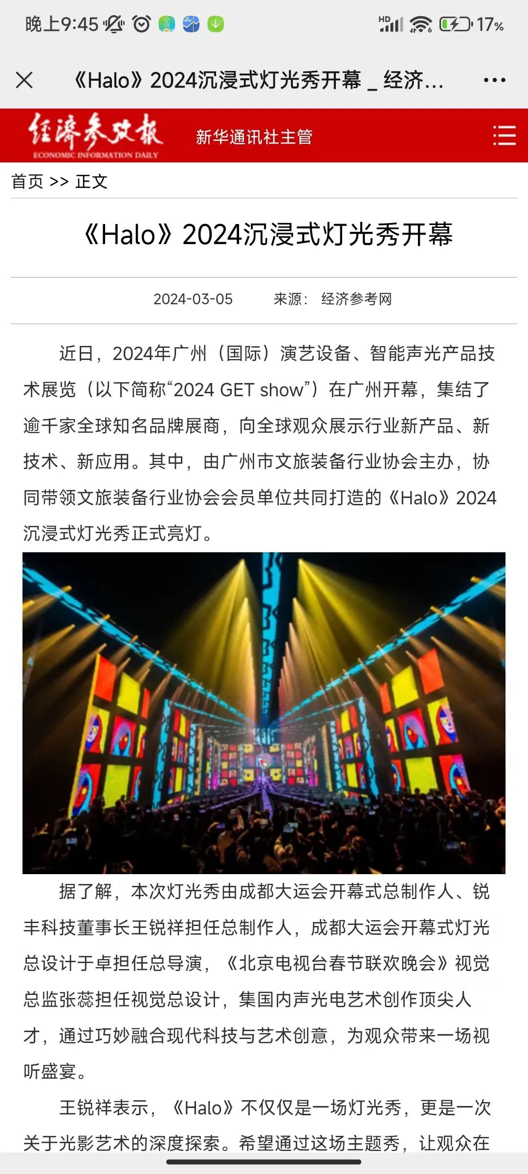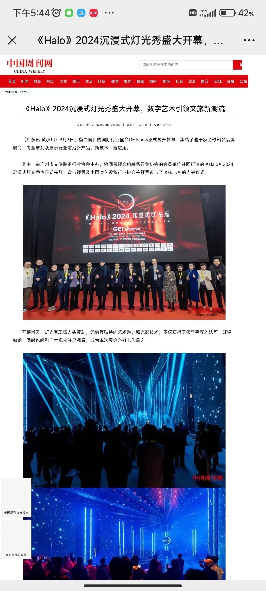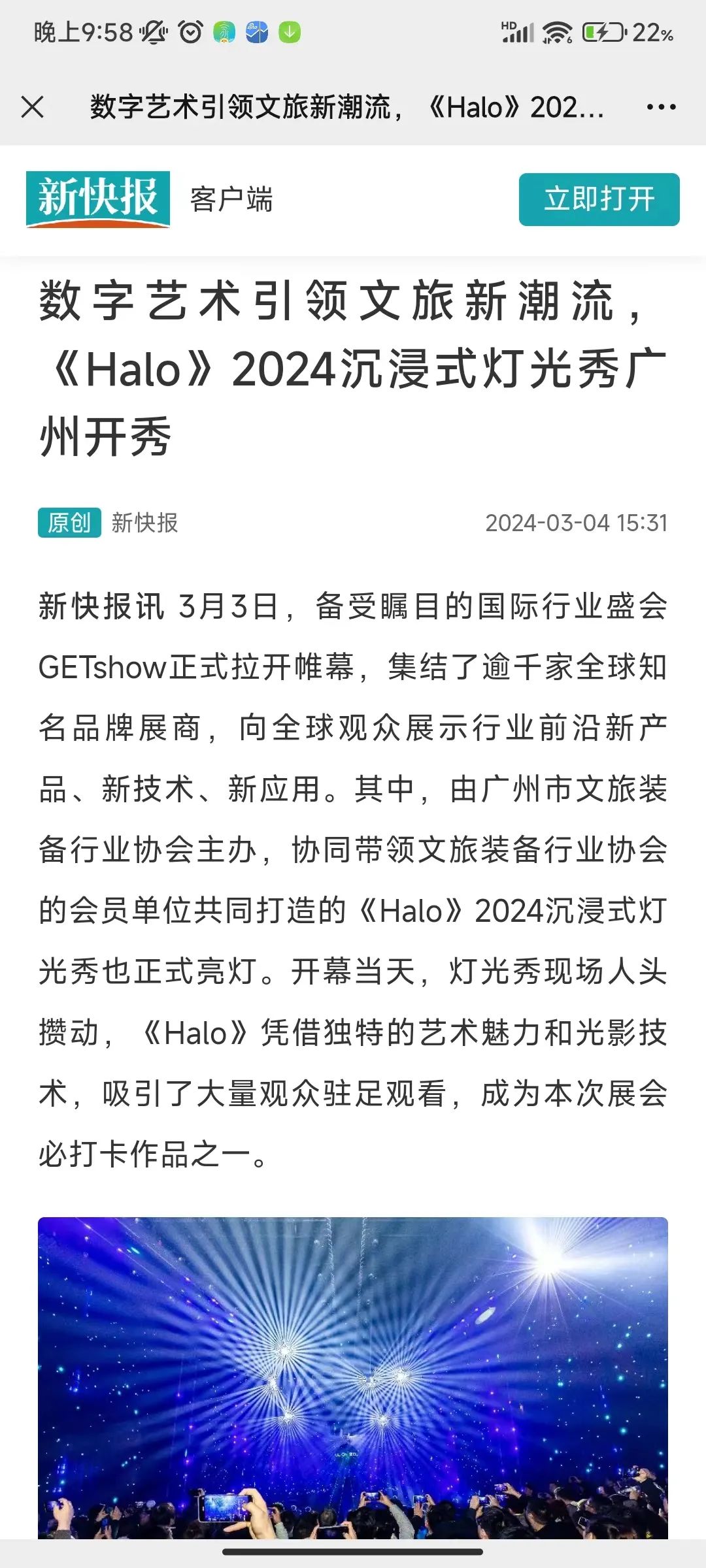 近日,GETshow展会火爆广州,以多场地的主题原创灯光秀“征服”海内外观众,沉浸式体验中国专业演艺设备与创新艺术文化融合的新成果、新应用。其中,由广州市文旅装备行业协会主办,协同带领文旅装备行业协会的会员单位共同打造的《Halo》2024沉浸式灯光秀,更是被各大媒体、网站“霸屏”。